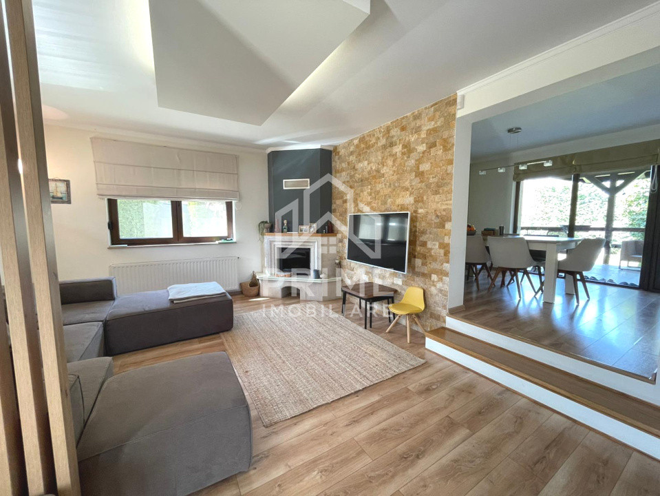 Zona de zi este gândită pentru confort și socializare, cu un living generos open space cu bucătăria, completat de zona de dining cu ieșire directă pe terasa acoperită, perfectă pentru relaxare sau petrecerea timpului în aer liber.